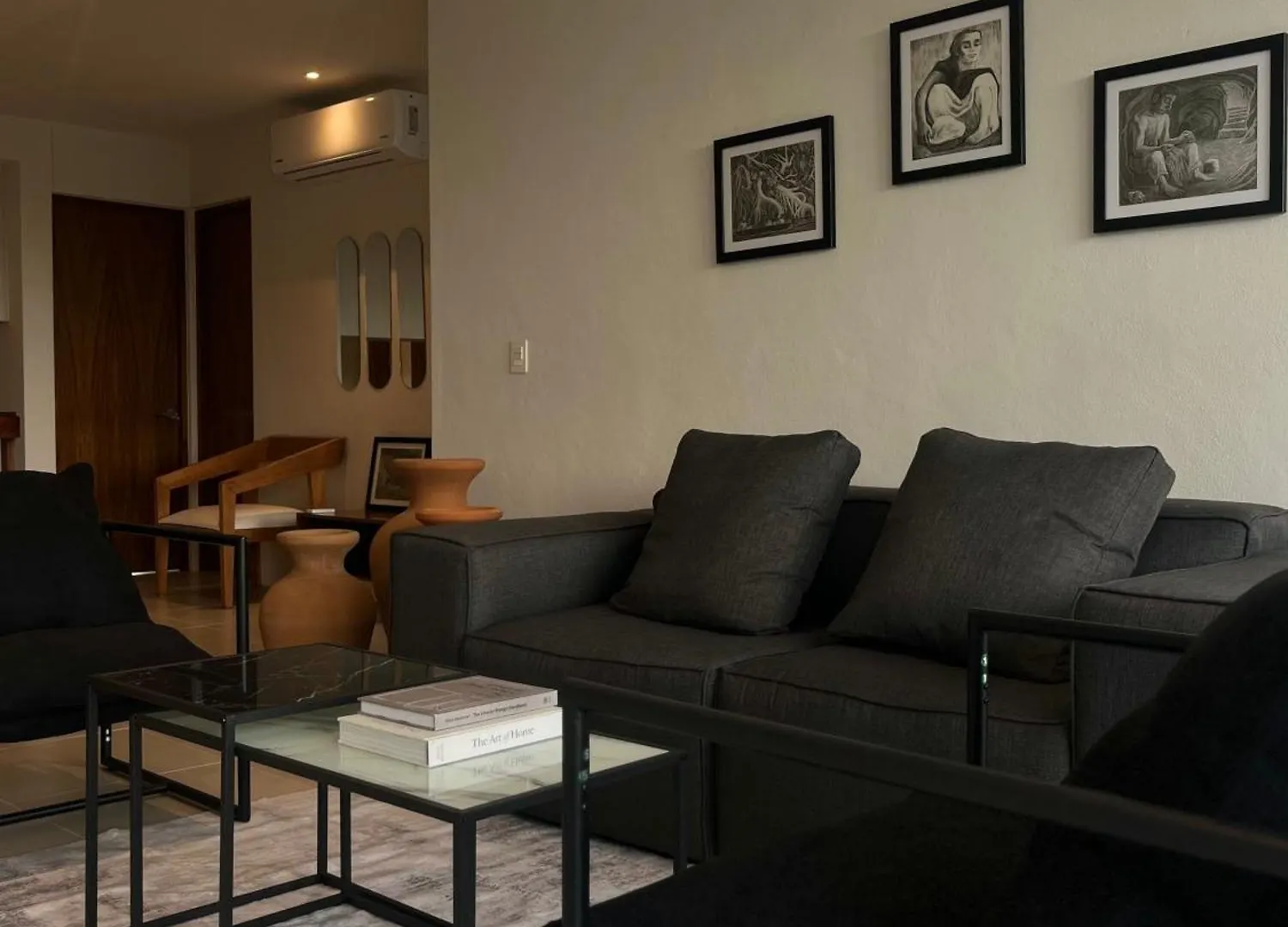 Penthouse Elementos Cozumel Torre Fuego Apartment offers a balcony and a sitting area with views of the garden and comforts like air conditioning. The accommodation includes 2 bathrooms. Furthermore, a shower is available.